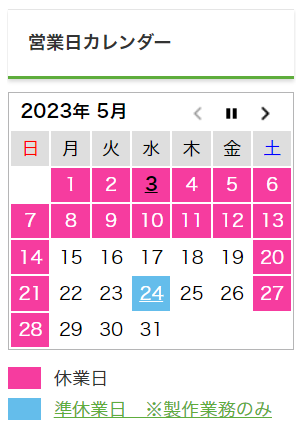 営業日カレンダー